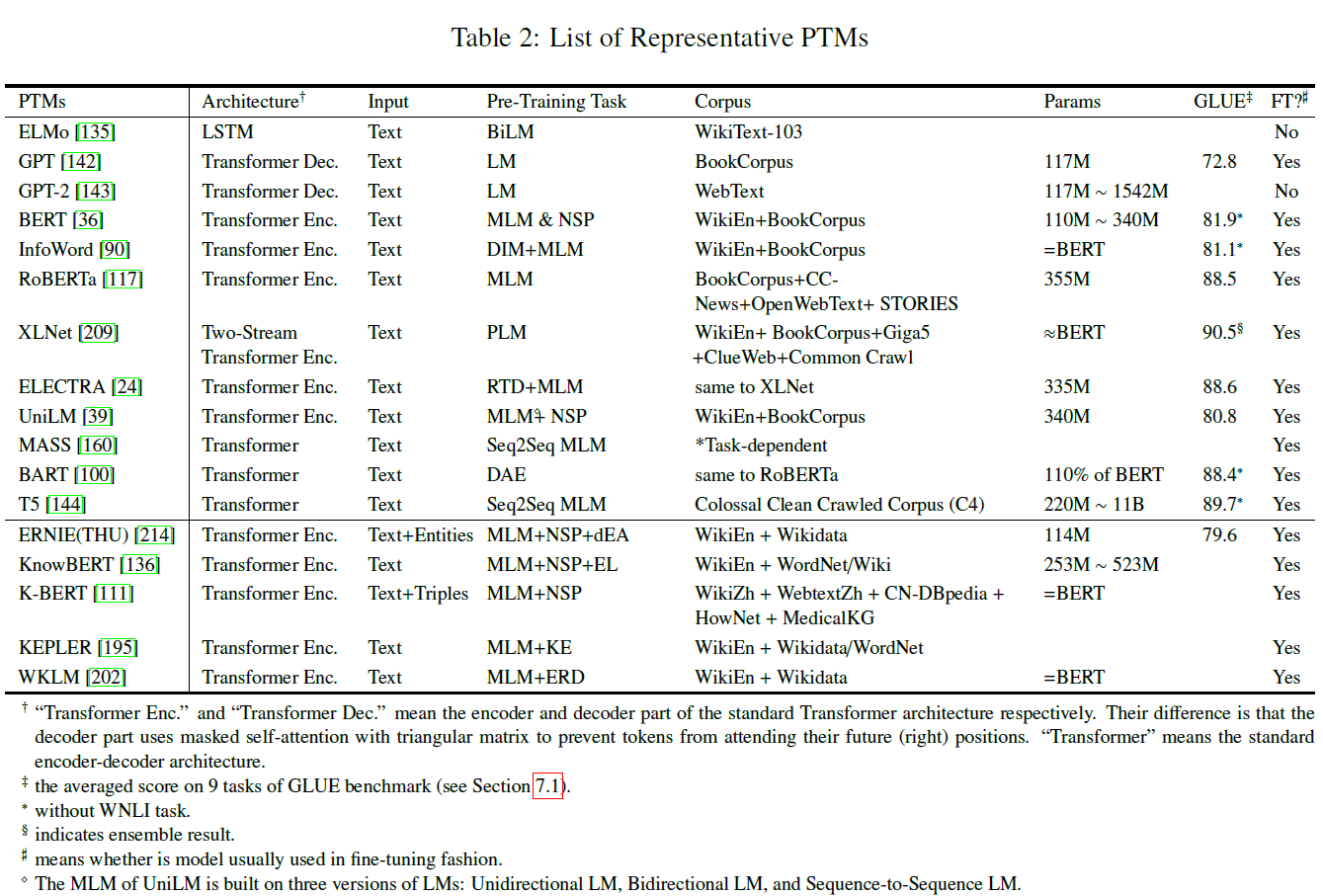 Pre-trained Models for NLP (PTMs) 总览